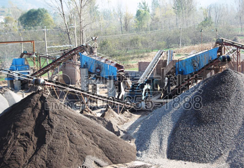 大塊石料經(jīng)料倉由振動給料機(jī)均勻地送進(jìn)鄂式破碎機(jī)進(jìn)行粗碎,粗碎后的石料由膠帶輸送機(jī)送到反擊式破碎機(jī)進(jìn)行進(jìn)一步破碎;細(xì)碎后的石料由膠帶輸送機(jī)送進(jìn)振動篩進(jìn)行篩分,篩分出幾種不同規(guī)格的石子,滿足粒度要求的石子由成品膠帶輸送機(jī)送往成品料堆;不滿足粒度要求的石子由膠帶輸送機(jī)返料送到反擊式破碎機(jī)進(jìn)行再次破碎,形成閉路多次循環(huán)。成品粒度可按照用戶的需求進(jìn)行組合和分級,為保護(hù)環(huán)境,可配備輔助的除塵設(shè)備。為滿足客戶不同的加工需要,可配備圓錐式破碎機(jī)、除塵設(shè)備等。