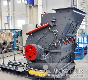 主機(jī)通過電機(jī)、三角皮帶帶動主軸,從而使轉(zhuǎn)子旋轉(zhuǎn),錘頭受到旋轉(zhuǎn)時所產(chǎn)生的離心力向四周伸開,大塊物料從進(jìn)料口進(jìn)入破碎腔之后,便被高速運動的錘子擊碎。破碎合格的物料則由下部有縫隙的蓖條排出,不合格的則留在破碎腔內(nèi),被錘子和承擊鐵塊反復(fù)作用,直至能夠合格排出。