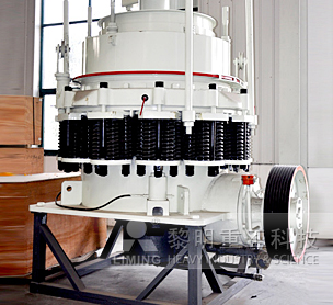 鵝卵石破碎機主要部分由機架、定錐總成、動錐總成、彈簧機構、碗型軸架部和傳動裝置組成。輔助部分由電氣系統(tǒng)、稀油潤滑系統(tǒng)、液壓清腔系統(tǒng)組成。其中定錐總成主要有調整套、軋臼壁,動錐總成主要由主軸、動錐體、破碎壁組成,傳動部分主要由大帶輪、傳動軸、小錐齒輪、大錐齒輪等組成。