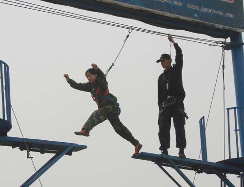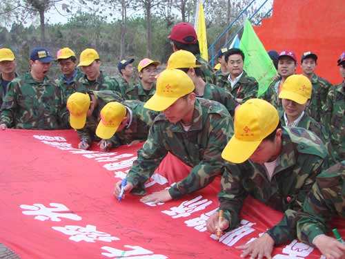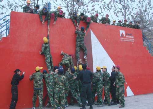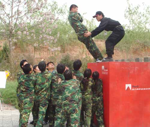 畢業(yè)墻是最后的一項(xiàng)拓展項(xiàng)目,攀上了畢業(yè)墻也就代表者課程的圓滿結(jié)束,公司在畢業(yè)墻前召開(kāi)了誓師大會(huì),參訓(xùn)員工都在鮮紅的營(yíng)旗上寫(xiě)下了自己的諾言,用一個(gè)個(gè)名字表示著一顆顆團(tuán)結(jié)、火熱的心。最后,在全體參訓(xùn)員工的共同努力下,我們用歷時(shí)8分鐘的好成績(jī)刷新了該訓(xùn)練基地該項(xiàng)目的用時(shí)紀(jì)錄,也給公司交上了一份滿意的答卷。