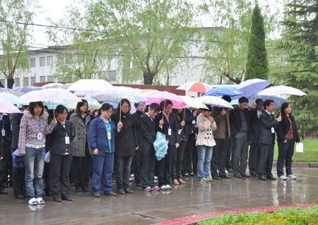 天空陰霾,細(xì)雨紛紛。4月21日上午10時(shí),黎明重工科技全體員工冒雨面向國(guó)旗肅立,默哀3分鐘,沉痛悼念4月14日青海省玉樹(shù)藏族自治州大地震遇難同胞。默哀結(jié)束后,公司領(lǐng)導(dǎo)走向捐款箱捐款, 全體職工緊隨其后,紛紛向?yàn)?zāi)區(qū)人民獻(xiàn)上了自己誠(chéng)摯的愛(ài)心。