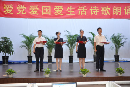 朗誦者時(shí)而低回婉轉(zhuǎn),時(shí)而嘹亮高亢,把詩(shī)歌的意境表達(dá)淋漓,一首首聲情并茂的贊歌,一幕幕飽含深情的表演,博得一浪浪如潮水般的雷鳴掌聲。