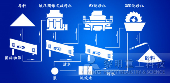 山東某老板投資300萬元建設砂場,以700mm以下的河卵石為原料生產(chǎn)機制砂。該場采用黎明重工的GZD1100*4200振動給料機、PE750*1060顎式破碎機、CS160圓錐式破碎機、5X1145制砂機、3YZS2460振動篩、XSD3016洗砂機兩臺的機制砂生產(chǎn)線配置,時產(chǎn)100方。如此,河道中90%以上的河卵石獲得開采利用,利用率的提高,相應地創(chuàng)造了更大的利潤空間。