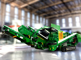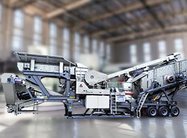 設(shè)備選用標(biāo)志性產(chǎn)品I44反擊破履帶式移動破碎站,物料經(jīng)主設(shè)備反擊破處理后產(chǎn)出50mm以下的砂石骨料。反擊破采用4組板錘轉(zhuǎn)子和寬破碎腔,在保障高破碎能力的基礎(chǔ)上盡可能壓縮空間,板錘可直接吊出,非常方便。