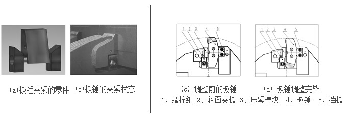 本機試機前需要調整排料口的大小及肘板與肘板座的接觸情況(看接觸是否完全),排料口的大小的調整方式有兩種