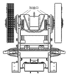 試機前必須確認各連接螺栓已擰緊,確認各活動部位已潤滑,潤滑站加油口位置(見右圖),潤滑方式采用干油集中潤滑站,干油集中潤滑站的結構圖見附錄,潤滑油脂用通用鋰基潤滑脂或復合鈣基潤滑脂。