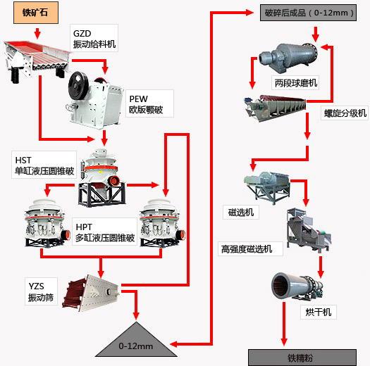 一、一條完整的破碎生產線,鐵礦石破碎機主要包含顎式破碎機和圓錐式破碎機;