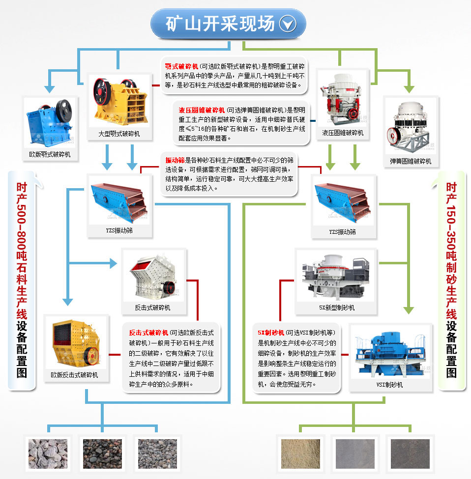 大型砂石料生產(chǎn)線的應(yīng)用在近幾年得到了廣泛的好評,一條配置完整,性能可靠的砂石料生產(chǎn)線基本上完成了礦山開采之后整個的生產(chǎn)工藝流程,從原料的輸送,粗細碎加工,到成品料的分選,黎明重工在砂石料生產(chǎn)線設(shè)備方面的科技研發(fā)和市場帶動作用效果顯著。