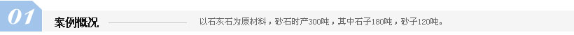 以石灰石為原材料,砂石300T/H,其中石子180噸,砂子120噸。